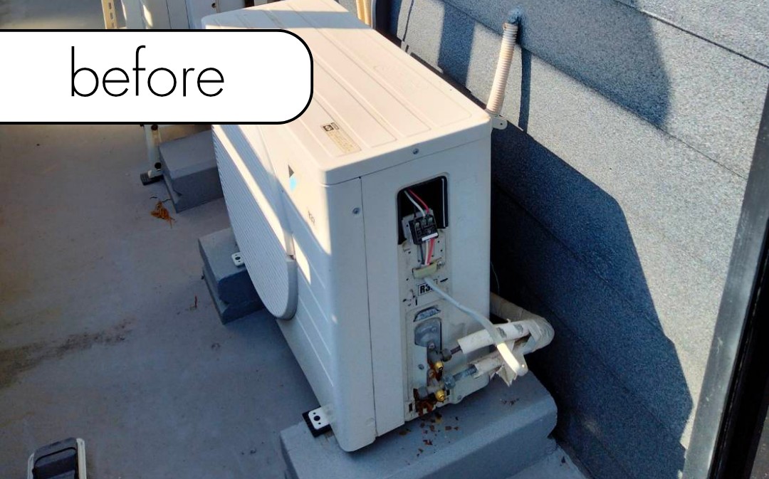 「新しいエアコンに買い替えた際、古い機体だけ庭やベランダに放置してある」という場合も、迅速に回収に伺います。