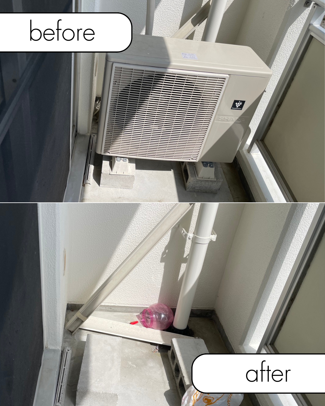 ベランダ置きや地面置きなど、標準的な設置状況であれば、取り外し工賃から回収費用まで0円で対応可能です。